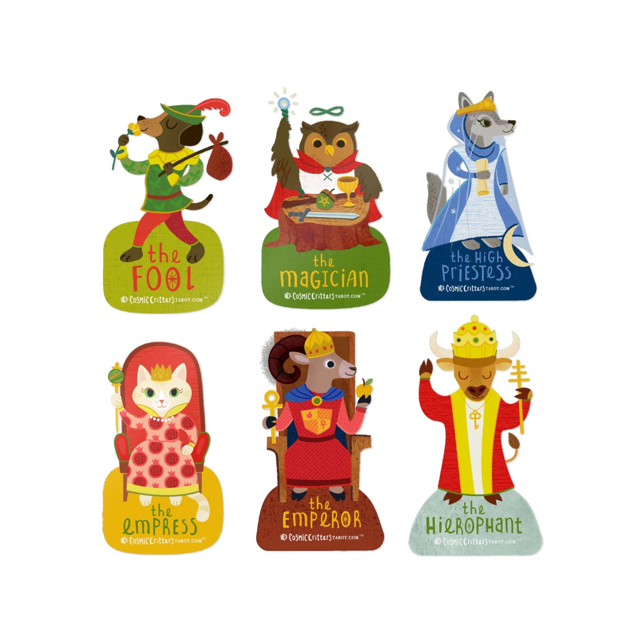 Cosmic Critters Die-Cut Stickers — The Fool, Magician, High Priestess, Empress, Emperor, Hierophant